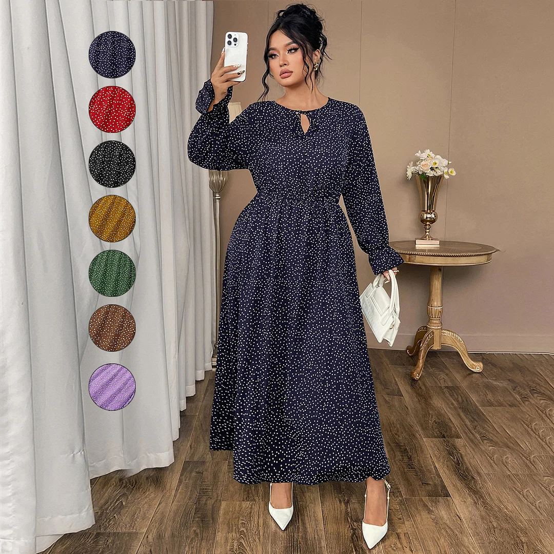 2025 Euro-American Retro Polka Dot Long-Sleeve Dress, Loose & Figure-Hiding Plus-Size Women's Commute Style