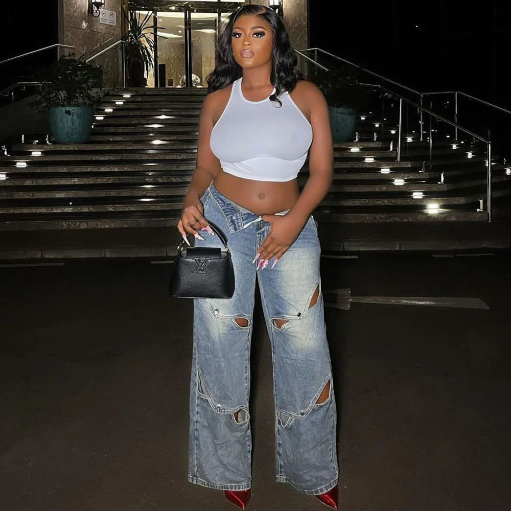 Street Fresh Style! EU/US Casual Washed Button High-Waisted Jeans | Light Blue for Radiance👖